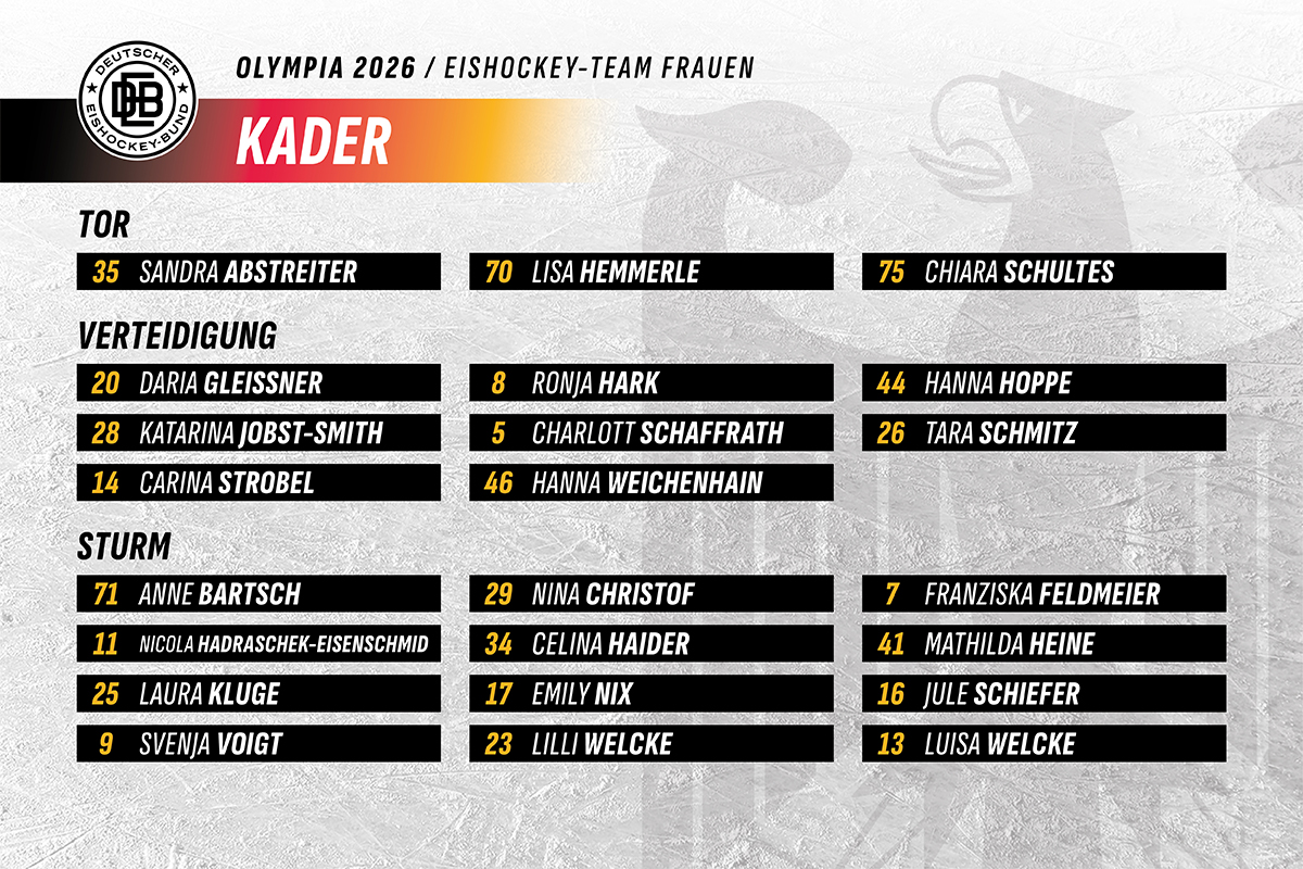 Der Deutsche Eishockey Bund e.V. (DEB) hat das Aufgebot der Frauen-Eishockeymannschaft für die Olympischen Winterspiele 2026 in Mailand und Cortina vom 6. bis 22. Februar 2026 festgelegt. Der entsprechende Vorschlag ist beim Deutschen Olympischen Sportbund e.V. (DOSB) eingegangen, der am 20. Januar die offizielle Nominierung für das Team Deutschland bekannt gibt.