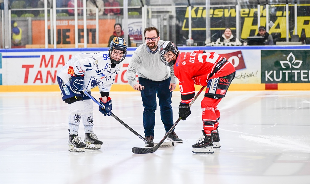 Das symbolische Eröffnungsbully am Sonntagmittag übernahm Memmingens Oberbürgermeister Jan Rothenbacher. 1638 Zuschauer hatten den Weg in die Eissporthalle am Hühnerberg gefunden. Ein neuer Zuschauerrekord fürs Memminger Fraueneishockey.