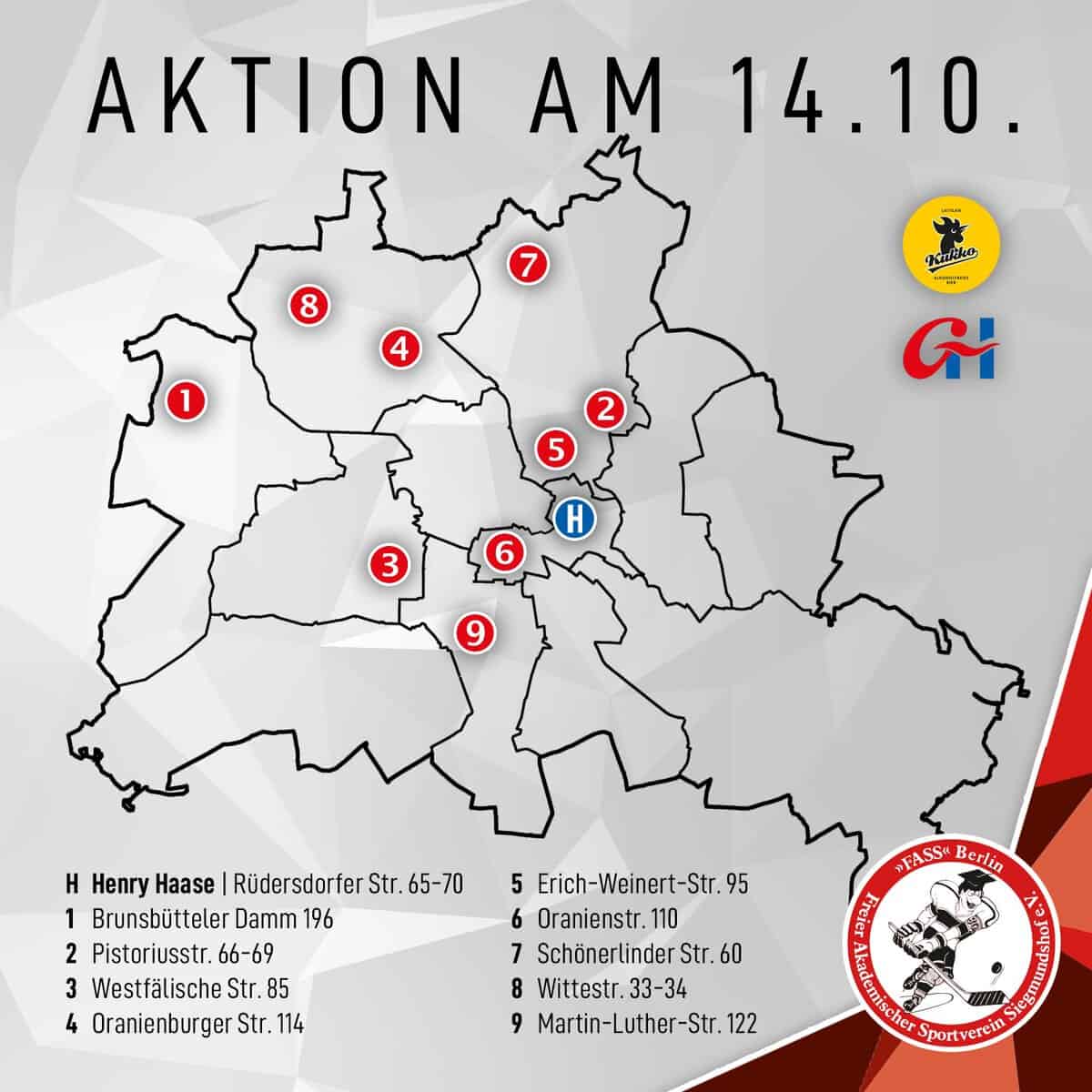 Große Aktion von FASS gemeinsam mit unserem neuen Hauptsponsor KUKKO und Getränke Hoffmann: An diesem Samstag (14.10.23) habt ihr zwischen 10:00 und 14:00 Uhr in zehn Filialen von Getränke Hoffmann die Gelegenheit, das Team von FASS zu treffen. In jeder Filiale werden zwei unserer Spieler sein und den Kundinnen und Kunden je eine Dose KUKKO alkoholfrei schenken.