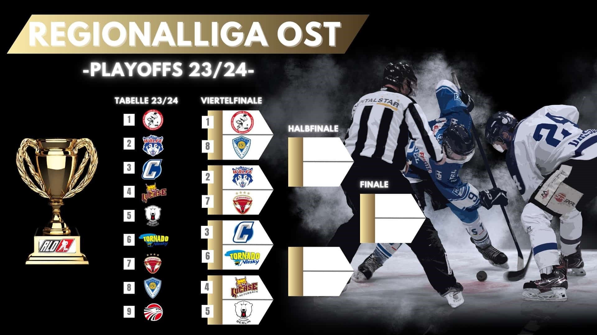 „Wir haben eine sehr gute Hauptrunde erlebt. 116 von 117 Spielen wurden durchgeführt. Einzig die Begegnung Weißwasser gegen die Adler musste für die Füchse gewertet werden. Positiv zu erwähnen ist die gestiegene Anzahl von Zuschauern in der Regionalliga Ost. Mit den Luchsen aus Lauterbach haben wir ein starkes Team hinzugewonnen. Die Fans dürfen sich auf spannende Playoffs freuen“, resümiert Ligenleiter Rentzsch.