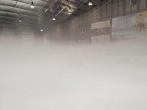 Das Spiel begann ausgeglichen, wobei die Gastgeber insbesondere ihre läuferischen Fähigkeiten in die Waagschale warfen. Zwar erspielte sich FASS ein Chancenplus, doch zeigte sich Fuß im Kasten der Luchse aufmerksam. Das Spiel litt in dieser Phase unter starker Nebelbildung, und beide Mannschaften mussten nach zehn Minuten erst einmal einige Runden drehen, um für bessere Sicht zu sorgen. Das half nur kurzfristig. Das Spiel stand wieder kurz vor einer Unterbrechung, als Goalgetter Daniel Volynec den Nachschuss nach einem Blueliner von Henry Haase zum 0:1 verwertete (19.). Das Schiedsrichtergespann, welches mit der Leitung der fairen Begegnung keine Probleme hatte, ordnete daraufhin vorzeitig die erste Pause an – und tatsächlich sollte der Rest der Begegnung mit weitgehend freier Sicht ablaufen.